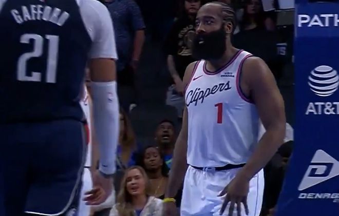 首節(jié)打了一半,哈登在弧頂出手三分,馬丁撲過來防守,直接撞倒了登哥,皮球還空心入網(wǎng)。哈登加罰命中,打成3+1。