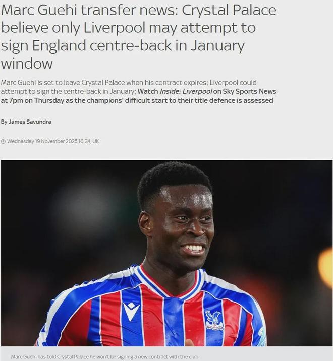 天空體育消息,水晶宮相信只有利物浦可能會(huì)嘗試在一月份簽下格伊,而其他感興趣的俱樂部都只想在明年夏天免簽這名中衛(wèi)。